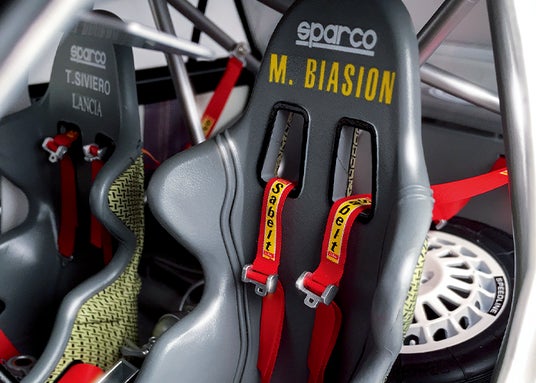 ドライバーズシートには1988年と1989年のWRCでドライバーズチャンピオンに輝いたミキ・ビアシオンの、パッセンジャーシートにはナビゲーターのティツィアーノ・シビエロの名前を記載。