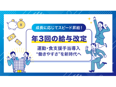 これにより、年3回の給与改定の機会を設け、社員の努力と成果をスピーディーに評価し、適正な給与水準への反映を実現しています。実力次第では、
