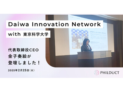 株式会社フィルダクト(本社:東京都港区、代表取締役CEO:金子奏絵)は、2025年2月25日に開催された「第142回 Daiwa Innovation Network with 東京科学大学」において、代表の金子奏絵が登壇したことをお知らせします。本イベントは、大和証券グループが開催するイノベーション推進プログラムであり、最先端技術を活用するスタートアップが7社集結しました。