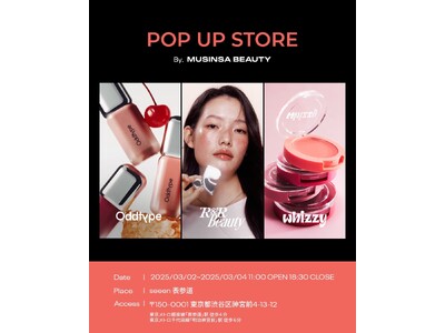 韓国のファッションプラットフォーム「MUSINSA(ムシンサ)」のプライベートコスメブランド「oddtype(オッドタイプ)」「Whizzy(ウィッジー)」「R&R Beauty(レストアンドリクリエーションビューティー)」のPOP-UP STOREが、2025年3月2日(日)~3月4日(火)の3日間、seeen表参道にて期間限定でオープンいたします。