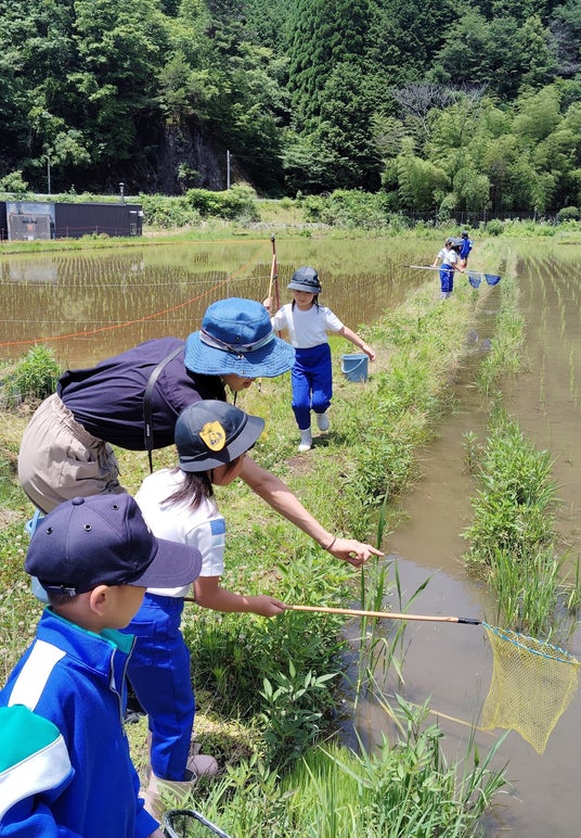 取組を進める中で、田んぼに生息する生きものの数が急激に増加したり、かつては村にもたくさんいたものの今はほとんど見られなくなってしまった希少な生きものが再び見られるようになったりと、生きものが次第に増えてきています。そして、そんな田んぼでは子供たちが夢中になって生きものと戯れる光景が戻りつつあります。