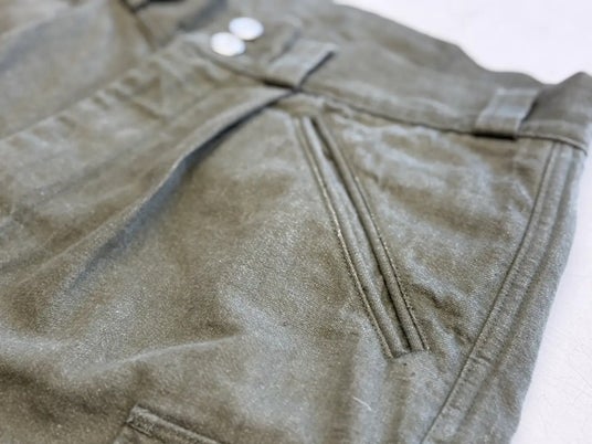 現在、古着市場では、コンディションの良いイギリス製“グリーンデニム”を使用した実物のミリタリーウェアは個体数が極めて少なく、