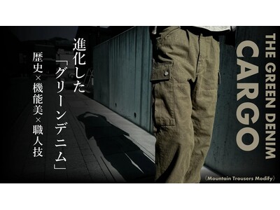 伝説のグリーンデニムを進化させた高品質カーゴパンツ誕生!旧式シャトル織機で織る希少セルビッチデニムを使用し、1940s米軍山岳部隊デザインを現代向けに改良!!