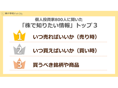 受講者数90万人を突破したオンライン株式スクール「株の学校ドットコム」(運営会社:株式会社トレジャープロモート、東京都千代田区、代表取締役社長:瀬川 丈)では、全国の個人投資家800人を対象に、株式投資にあたってどんな情報を知りたいか、また、どんなことに悩んでいるのかについてアンケート調査を実施しました。