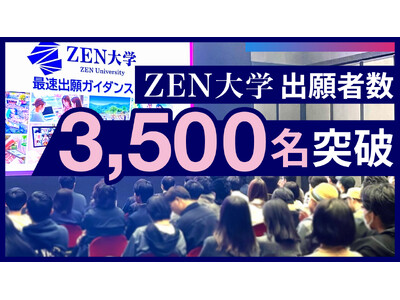 学校法人日本財団ドワンゴ学園は、2025年4月に開学するオンライン大学「ZEN大学」において、出願者数が2025年2月23日に3,500人を突破したことをお知らせいたします。また第1期合格者のうち、ZEN大学を専願とした方の入学金・授業料納入率が95%に達したことも併せてお知らせいたします。
