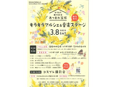 - キラキラマルシェ:10:00~15:00(宝塚ゆめ広場、ソリオ1 GF、花のみちセルカ)