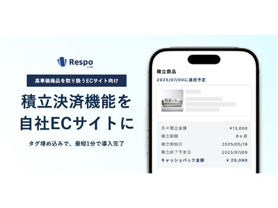 EC向け積立決済SaaS「Respo(リスポ)」を提供する株式会社リスポ(所在地:東京都渋谷区、代表取締役:黍田龍平、以下:リスポ)は、メーカーや小売事業者、旅行事業者向けに自社ECサイトへ「積立決済機能」を組み込めるSaaS型サービスの正式提供を開始しました。