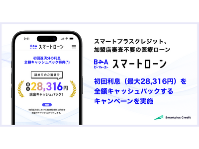 次世代金融インフラの提供を通して組込型金融を実現するFinatextグループの株式会社スマートプラスクレジット(本社:東京都千代田区、代表取締役:大澤 和明、以下「スマートプラスクレジット」)は、自由診療クリニック特化型のDXツール「B4A(ビーフォーエー)」を開発・提供する株式会社B4A (本社:東京都港区、代表取締役CEO:植松 正太郎)との協業で提供している医療ローンサービス「B4Aスマートローン」にて、最大28,316円の初回利息を全額キャッシュバックするキャンペーンを2025年2月27日(木)より開始いたします。