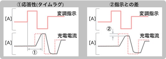 結果として、ミニキャブEVで変調出来うる最大値まで電流を変調したところ、高い応答性が得られ、変調指示との差が小さいことが分かったため、本技術に対応できることを確認しました。