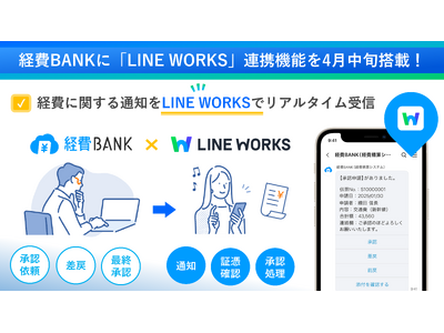 総合フィンテックソリューション企業であるSBI FinTech Solutions株式会社の子会社で、バックオフィス支援サービスを提供するSBIビジネス・ソリューションズ株式会社(本社:東京都港区、代表取締役社長:夏川 雅貴、以下「当社」)は、クラウド型経費精算システム「経費BANK」において、LINE WORKS株式会社(本社:東京都渋谷区、代表取締役社長:島岡 岳史)が提供する企業向けのクラウド型ビジネスチャットツール「LINE WORKS」との連携機能オプションを、4月中旬より提供開始しますので、お知らせいたします。
