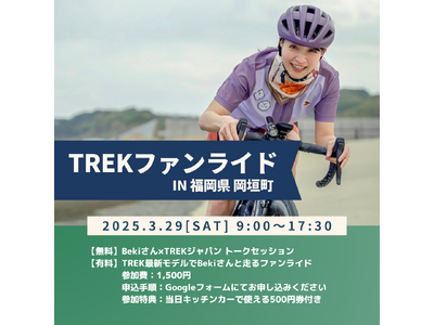 サイクリングアイランド九州とTREKが岡垣町でファンミーティングを開催。人気サイクルインフルエンサーBekiさんと楽しむトーク&ライド、最新バイク試乗、飲食を楽しめるキッチンカーも設置。