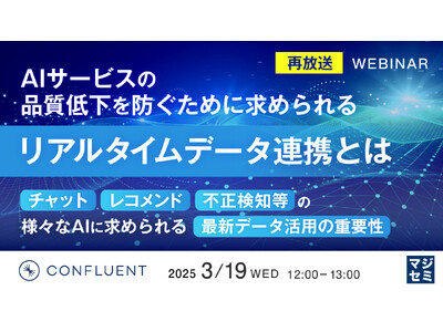 マジセミ株式会社は、大変好評をいただいた「【再放送】AIサービスの品質低下を防ぐために求められるリアルタイムデータ連携とは」というテーマのウェビナーを再放送します。