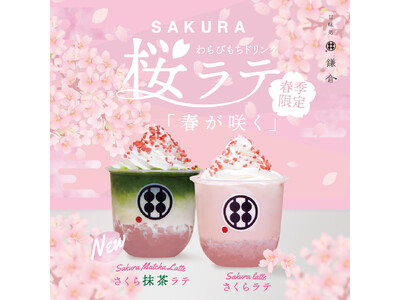 春を感じる特別な味わいの『桜ラテわらびもちドリンク』と『桜抹茶ラテわらびもちドリンク』は、全国の甘味処鎌倉の店舗で 3月2日より販売開始!