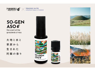 公益財団法人 阿蘇グリーンストック(所在:熊本県阿蘇市、理事長:佐藤義興 阿蘇市長 以下「阿蘇グリーンストック」)・熊本県及び環境省で取り組んでいる、熊本県阿蘇地域の「千年の草原」を守り、次世代に繋いでいく活動「阿蘇草原再生プロジェクト」は、TOMOKO SAITO AROMATIQUE STUDIO(TS Aromatique株式会社、代表取締役:齋藤智子)とのコラボレーションにより、阿蘇をイメージした香り「SO-GEN ASO」を創香しました。この香りは、阿蘇の代名詞でもある火山の溶岩・水で、小国杉などの蒸留を行い、干し草や熊本県の県木である「樟」を使っています。