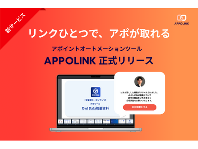 株式会社Owl Data(本社:東京都渋谷区、代表取締役:中村優太 以下、Owl Data)は、リンクからアポを生み出す新サービス「APPOLINK(アポリンク)」を正式リリースしたことをお知らせします。