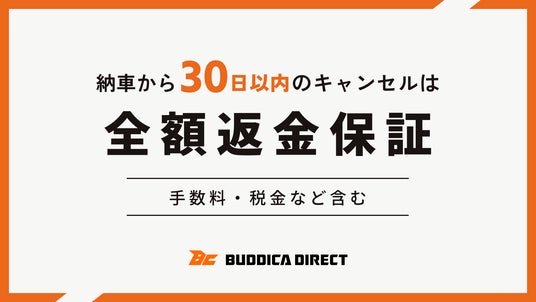 バディカダイレクト&バディカ店舗では3月1日より納車から30日以内のキャンセルは税金・諸経費含めて全額返金保証実施