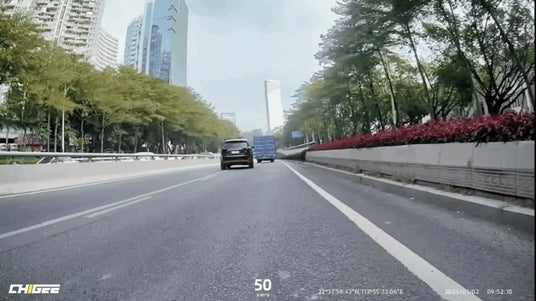 ・昼間の走行- 明るい日中でも色鮮やかで細部まで鮮明に記録。交通標識やナンバープレートも高精細に捉えます。