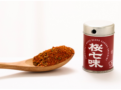 『桜七味』は、桜葉を七味唐辛子に加えた、日本の春を象徴するスパイスです。