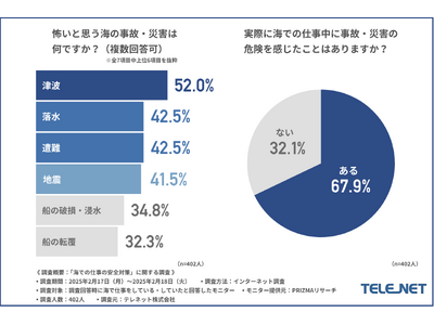 テレネット株式会社(所在地:長野県飯田市、代表取締役:青山 貴子)は、海で仕事をしている・していた方を対象に、「海での仕事の安全対策」に関する調査を実施しました。