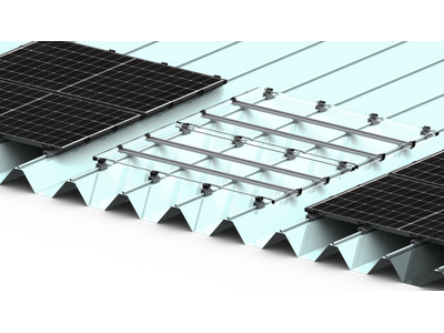 「PVサポート」は、積雪地域向けに開発された太陽光パネル補強工法です。モジュールの裏面に専用のバーを取り付けることで、積雪荷重によるパネルの変形を抑制し、破損を軽減します。豪雪地域でも安心して太陽光パネルを設置でき、屋根材の種類はハゼ式折板屋根に適用します。