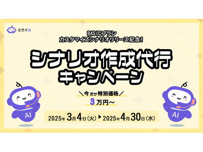 株式会社ソフツーが運営するAI電話自動対応サービス「ミライAI」は、2025年3月4日よりBASICプランでのカスタマイズシナリオ提供に伴い『シナリオ作成代行キャンペーン』を開始いたします。