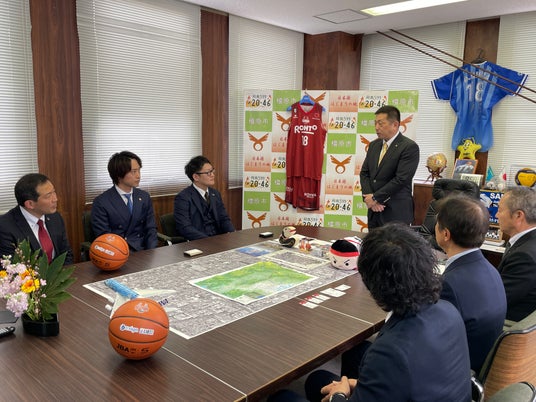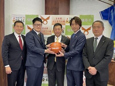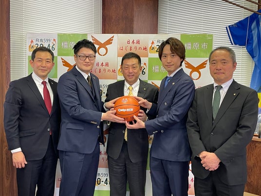 2月28日には、橿原市役所にてバスケットボール贈呈式が行われ、株式会社signの吉尾遼哉 代表取締役社長から亀田忠彦 橿原市長へバスケットボールが贈呈されました。