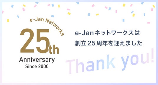 e-Janネットワークス株式会社(本社:東京都千代田区、代表取締役:坂本史郎)は、2025年3月6日に創立25周年を迎えたことをお知らせします。当社は2000年の創業以来、1,700社80万ユーザーを超えるお客様に支えられ、成長を続けてまいりました。これまで支えてくださった皆様に心から感謝申し上げます。