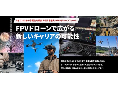 また、卒業生には中学生から70代まで幅広い層が在籍し、個々の目的に合わせたカスタマイズされた指導が好評価を獲得。FPVドローンの魅力をより多くの人々に伝え、教育や映像制作分野で新たな価値を創出し続ける。
