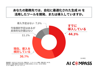 FutureRays株式会社(本社:大阪府大阪市、代表取締役社長:中井 崇幸)が提供する「AIコンパス」は、企業でAIの導入を担当する方を対象に「自社に最適化された生成AIを活用したツール開発の実態」に関する調査を実施しました。この調査結果から、企業の自社に最適化された生成AIへの意識やその活用実態などが明らかになりました。