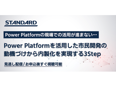 大手企業を中心に1,000社以上のデジタルトランスフォーメーション(以下「DX」)の推進と内製化を支援する株式会社STANDARD(本社:東京都港区、代表取締役社長:伊藤海)は、Webセミナー「Power Platformを活用した市民開発の動機づけから内製化を実現する3Step」のアーカイブ動画を無料公開いたしました。
