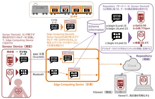 (図1)ウェアラブルセンサ信号コンテナフォーマット技術 概念図