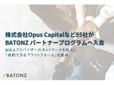 M&A・事業承継支援プラットフォーム「BATONZ(バトンズ)」を運営する株式会社バトンズ(本社:東京都中央区、代表取締役CEO:神瀬悠一、以下バトンズ)は、新たに55社のM&Aアドバイザーが2025年2月4日から2025年3月3日の期間に「BATONZ パートナープログラム」へ入会したことをお知らせします。