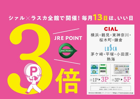 「シァル×ラスカ全館で開催!毎月13日は、いい日 JRE POINT3倍」を開催する。