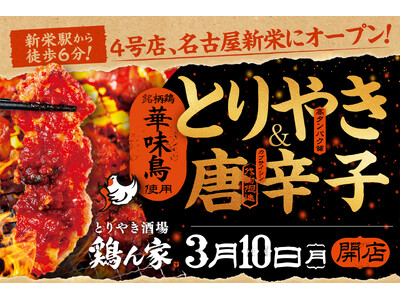 トリゼンダイニング株式会社(本社:福岡市博多区/代表取締役社長:河津 善博)は、2025年3月10日(月)に系列店では4号店となる「とりやき酒場 鶏ん家 名古屋新栄店」(とりやきさかば とりんち なごやしんさかえてん)を愛知県名古屋市中区東桜2丁目にオープンいたします。