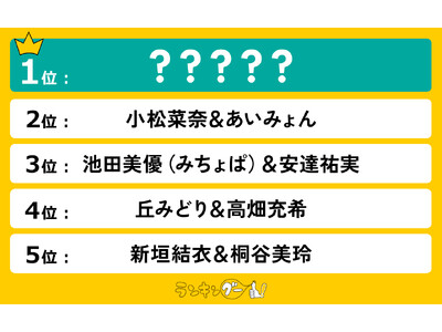 1位はパーツがはっきりとした、華やかな顔立ちが姉妹のようにそっくりな広瀬アリスさん&水野美紀さんに決定!2位はミステリアスな雰囲気が似ている、小松菜奈さん&あいみょんさん。僅差で3位は池田美優さん(みちょぱ)&安達祐実さん。4位は丘みどりさん&高畑充希さん。そして、5位には新垣結衣さん&桐谷美玲さんがランクインしました!