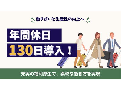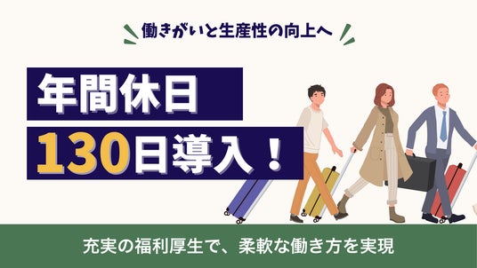 「年間休日130日」の導入を決定しました。従来の働き方にとらわれず、柔軟な勤務体制を整えることで、社員の心身の健康維持と生産性向上を実現します。