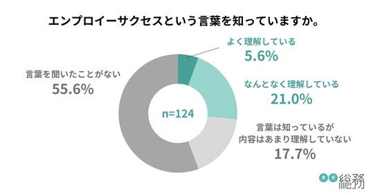エンプロイーサクセスという言葉を知っているか尋ねたところ、55.6%が「言葉を聞いたことがない」と回答し、認知度は低い状況にあることが明らかになりました(n=124)。