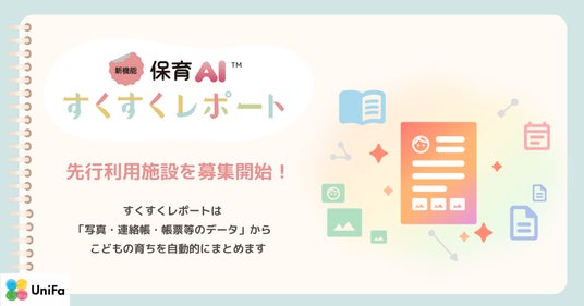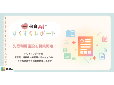 テクノロジーの力で保育や子育てに関する社会課題を解決するユニファ株式会社(本社:東京都千代田区、代表取締役CEO:土岐泰之、以下「ユニファ」)は、保育総合ICTルクミー(以下「ルクミー」)の「写真・連絡帳・帳票等のデータ」からこどもの育ちを自動でまとめることができる保育AIサービス「すくすくレポート(TM)」を開発しました。