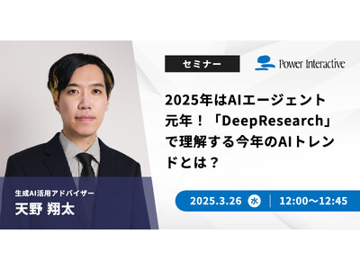 株式会社パワー・インタラクティブは、無料ウェビナー『2025年はAIエージェント元年!「DeepResearch」で理解する今年のAIトレンドとは?』を、3月26日に開催します。