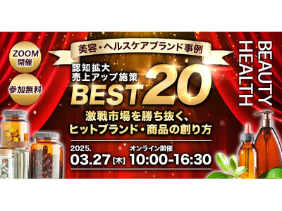 ECモールから自社ECサイトまであらゆる運用体制のネットショップに対し、販売戦略立案から実行までをサポートする株式会社マクロジ(本社:福岡県福岡市、代表:上田 隆太)は、2025年3月27日 (木) 、『\美容・ヘルスケアブランド事例/認知拡大・売上アップ施策BEST20~激戦市場を勝ち抜く、ヒットブランド・商品の創り方~』を開催いたします。