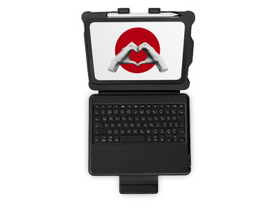 JIS規格日本語キーボード(かな印字あり)を搭載。iPad本体との接続はケースと一体化したUSBタイプCコネクタで行うため、面倒なケーブルの取り回しをする必要がなく、ケーブル断線のリスクを低減しました。複雑なBluetoothのペアリングも必要なく、すぐに滑らかなタイピングを実現します。