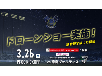 FC今治で開催する、2025年3月26日(水)開催の2025JリーグYBCルヴァンカップ 1stラウンド1回戦(vs 徳島ヴォルティス)の試合終了後に、KDDI株式会社の協賛により、ドローンショーの実施が決定しました。ドローンショーの実施はクラブとして初となります。