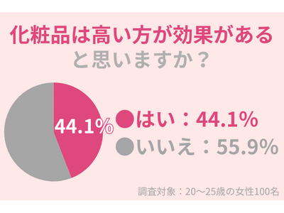 20~25歳女性の44.1%の方が「化粧品は高い方が効果がある」と思っていることがわかりました。