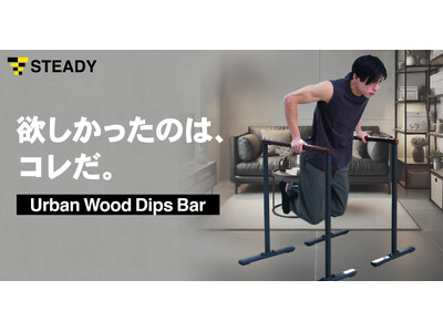 2018年のブランド展開開始から、SNSやカスタマーサポートで既存製品に対するお客様の声を拾い上げ、日本人の体格や考え方、住環境、ライフスタイルに配慮したホームフィットネス / ストレッチ製品を提案し、日本においてトップクラスのEC販売実績を誇るステディジャパン株式会社(本社:東京都新宿区、代表取締役CEO:森由樹)は、スタイリッシュさと機能性を兼ね備えたプレミアムなディップスバー「STEADY Urban Wood Dips Bar」を2025年3月17日(月)よりSTEADY公式サイト、総合オンラインストアAmazon.co.jp、楽天市場などにて販売開始します。