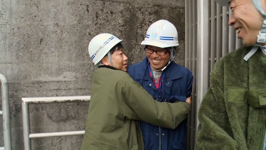 なんとか気を取り直して階段を降りると、たどり着いたのはダムマニア憧れの激レアスポット「選択取水設備(水深ごとの温度や水質に応じてダムから最適な層の水を選んで取水できる設備)」。その内部に興奮する山名と、あまりの高さに更に身動きできなくなる秋山。