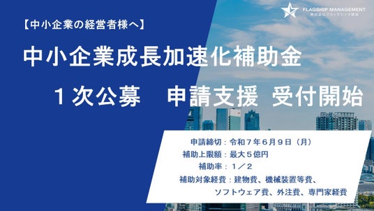 株式会社フラッグシップ経営は、2025年3月18日より、【中小企業成長加速化補助金】に関する無料相談、申請支援サービスの受付を開始いたしました。