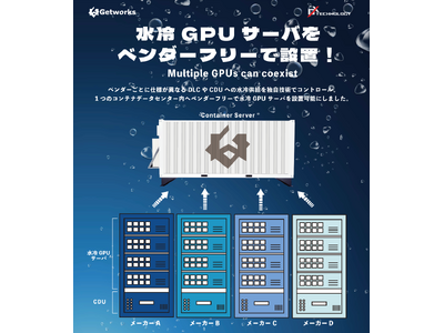 コンテナ型データセンター事業を手掛ける株式会社ゲットワークス(本社:埼玉県さいたま市、代表取締役:中澤 秀則、以下「ゲットワークス」)は、新潟県湯沢町にて株式会社GXテクノロジー(本社:新潟県湯沢町、代表取締役:瀧澤 泰三、以下「GXテクノロジー」)と共同で運営するコンテナ型データセンター「湯沢GXデータセンター」にて、複数ベンダーの水冷GPUサーバーを一つのコンテナで稼働できるサービスを開始しました。