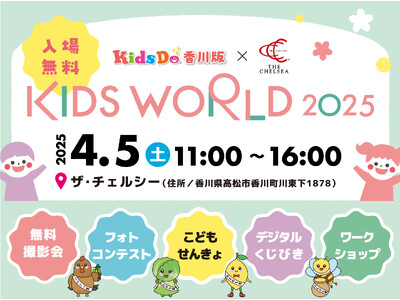 未就学児向け学習フリーペーパー「KidsDo(キッズドゥ)」を発行する株式会社インターロジックと、結婚式場「ザ・チェルシー」を運営する高松パレス株式会社は、2025年4月5日(土)に「KidsDo香川版×THE CHELSEA KIDS WORLD 2025」を開催いたします。地域の未来を担う子どもたちのために、親子で楽しめるワークショップや企業ブースなど、さまざまなコンテンツを提供します。子どもたちの好奇心を育み、親子で学びながら楽しむことができる1日です。事前予約不要なので、ご家族みんなでぜひご参加ください!