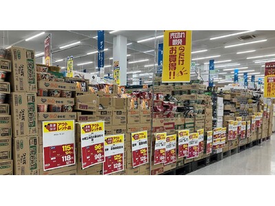 長年にわたり地域の皆様に親しまれてきた綿半ホームエイド川中島店が、新たな試みとして、通常のホームセンター商品に加え、加工食品や日用品を中心としたアウトレット商品を大々的に販売するスタイルへと進化しました。