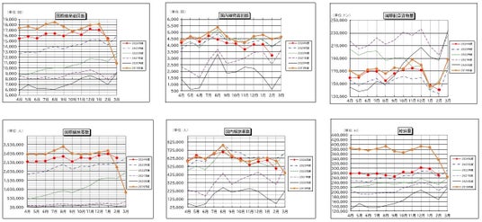 続き外国人旅客数は190万人(19年同月比138%)と好調に推移し、2月の最高値を更新していま